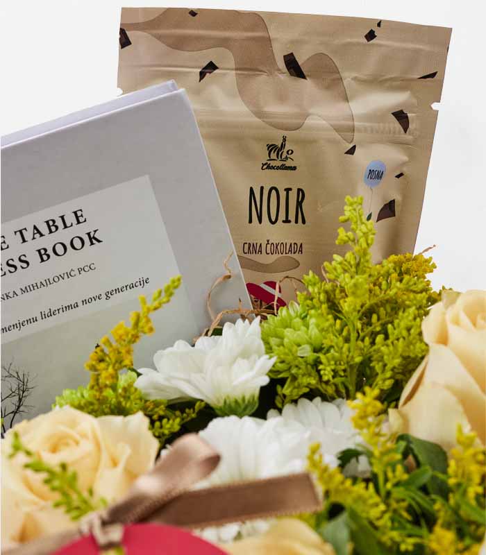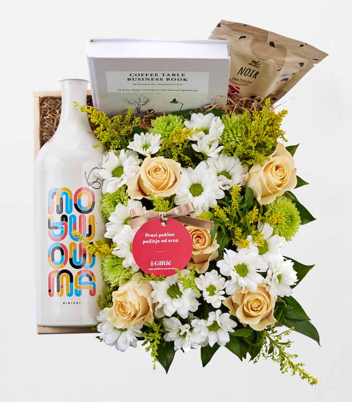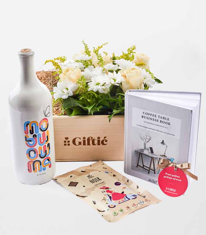 The Vincent Van Gogh gift set is inspired by the rich colors created by this iconic artist and is perfect for her — businesswomen and entrepreneurs with strong character and successful careers. The set includes Moma wine by Bikicki, a Coffee Table Business book (Serbian edition), Noir dark chocolate, and a flower arrangement, all carefully packed in an elegant wooden box. This gift is an ideal way to express admiration for the success, style, and courage of women who make their mark in the business world.