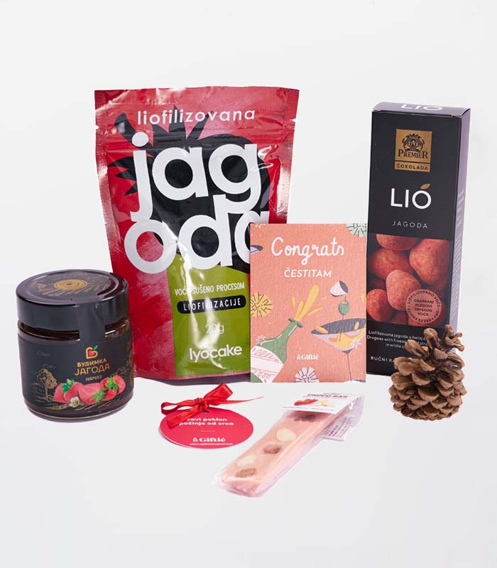 Poklon set Jagodica Bombica ispunjava svaki san ljubitelja jagoda.