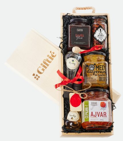 Poklon paket sadrži zdrave bundevine proizvode od hladno ceđenog bundevinog ulja, koje će se odlično slagati sa brašnom tikve golice, puterom od bundeve, nož kako bi se puter lako razmazao i jedan Cookie koji će da stavi tačku na ceo ugođaj.